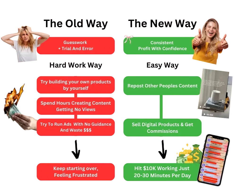 It's simple: You will get everything we talked about… How I setup & sell digital products... How I make my phone go “Ca-Ching” every couple of minutes… How you can copy & paste my entire business for yourself... If you complete the whole challenge and it STILL doesn't work for you… Just message us and we'll help you 1on1 per chat until you make your first 10 sales - You have nothing to loose!
